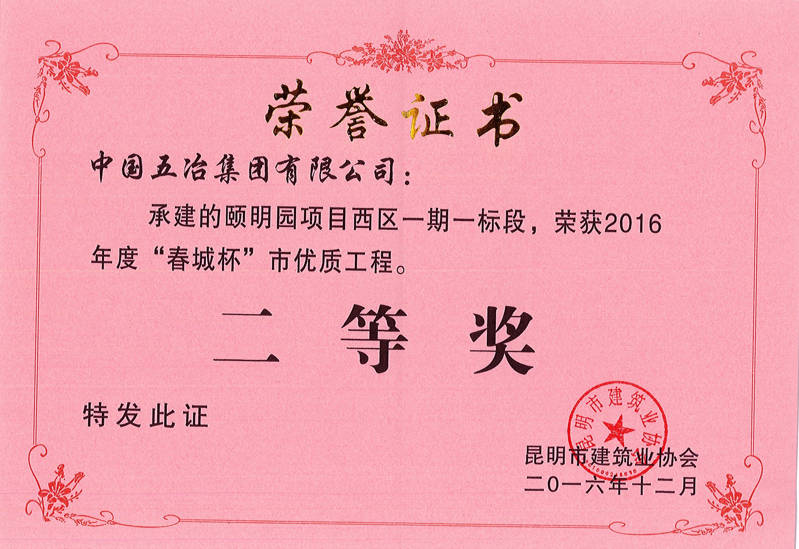 頤明園項(xiàng)目西區(qū)一期一標(biāo)段—2016年度昆明市春城杯二等獎(jiǎng)