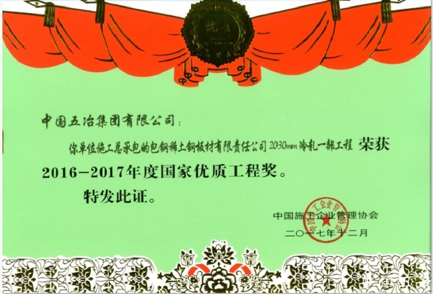 包鋼稀土鋼板材有限責任公司2030mm冷軋工程——2019年度魯班獎