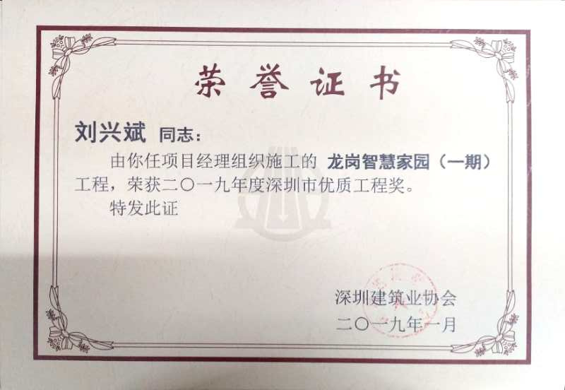 龍崗智慧家園(一期)榮獲2019年度第一批深圳市優質工程獎
