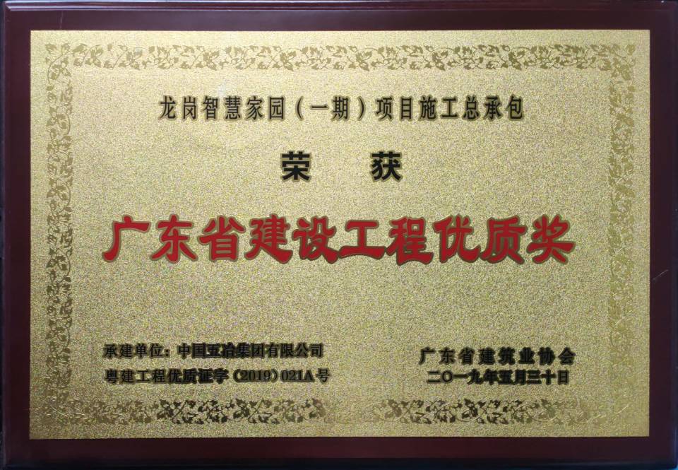龍崗智慧家園(一期)項目施工總承包榮獲2019年度廣東省建設工程優質獎(房屋建筑及專業工程)