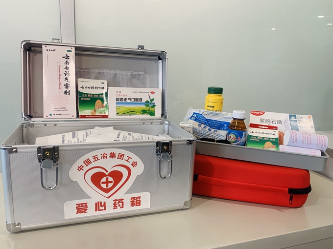 中國五冶愛心藥箱中配備了常用的應急藥品,其中包括速效救心丸和防暑、腹瀉等方面的內服藥品,以及云南白藥、創口貼、碘伏等外用藥品等,以便為突發情況的職工提供基礎急救保障。